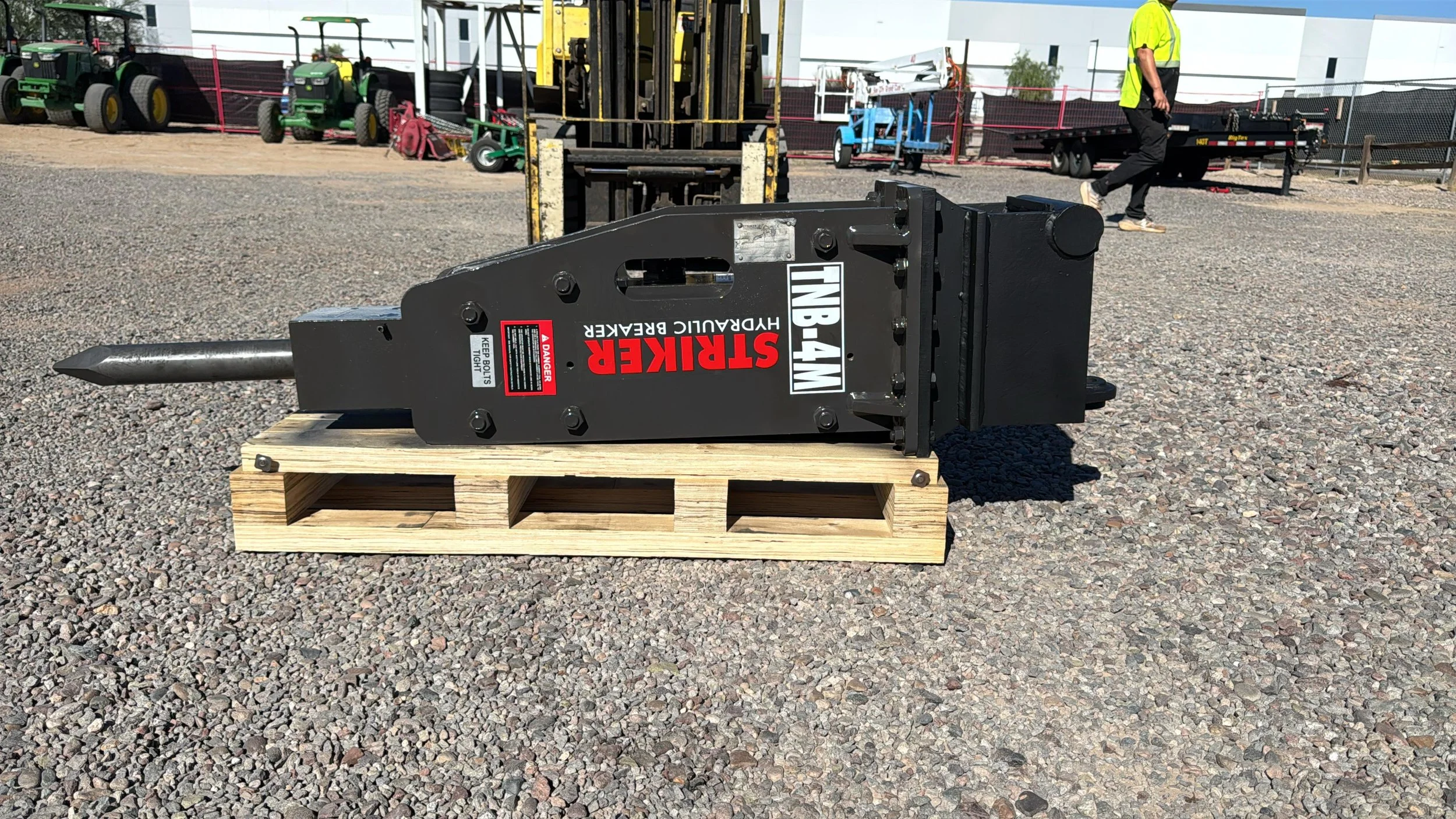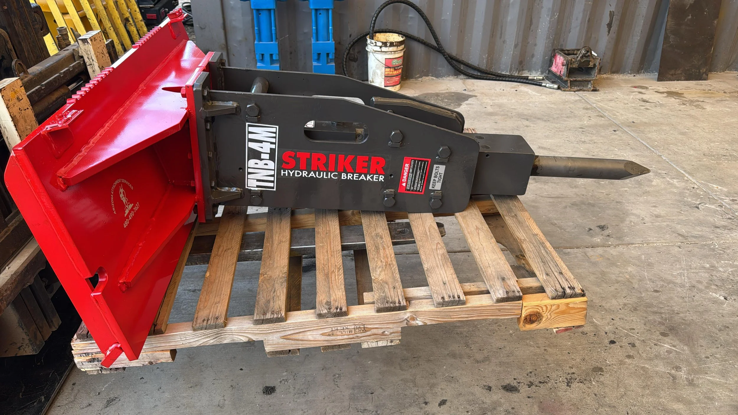 Rebuilt 550-foot-pound breaker with a bolt-on skid steer bracket.